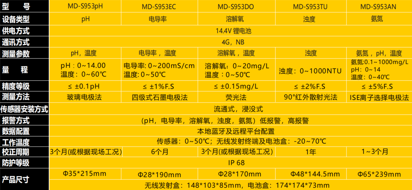 MD-S953系列無線水質傳感器是一款將傳感器,通訊模塊,供電電源分體式設計的無線終端。
