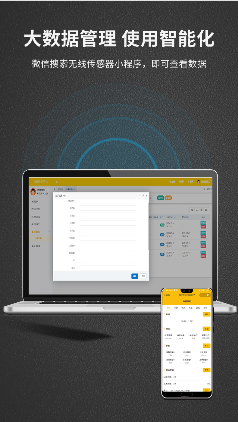 該監測儀是一款集傳感器技術,無線通訊技術及邊緣算法于一體的設備。可利用藍牙或云平臺對設備進行參數設置。同時具備設備健康度管理、數據仿真、藍牙定位、設備固件升級等功能。